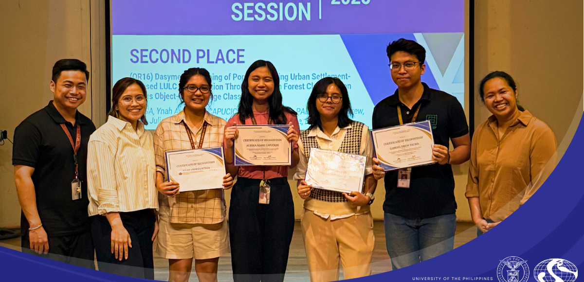 In the Oral Session, first place was awarded to GIS-Based Suitability Analysis of Landfill Sites in Davao City (Gerome Kevin T. Argao, Vinz Adrian O. Crisostomo, Van Ulrich G. Delos Santos – Adviser: Assoc. Prof. Alexis Richard C. Claridades, PhD). Second place went to Dasymetric Mapping of Population Using Urban Settlement-Focused LULC Classification Through Random Forest Classification Versus Object-Based Image Classification (Ynah Andrea D. Sunga, Althea Marie B. Capucion, Gabriel Drew S. Palma, Julia Clarice Uy – Adviser: Asst. Prof. Jennieveive B. Babaan-Mabaquiao). Third place was awarded to Traffic Volume Analysis in Commonwealth Avenue Using Vehicle Detection and Tracking in Video Data (Shane Heart P. Dreo, Edgar S. Dumalaog, Christopher John C. Sumilang – Adviser: Asst. Prof. Ma. Rosario Concepcion O. Ang).